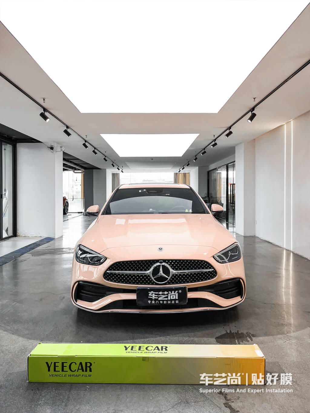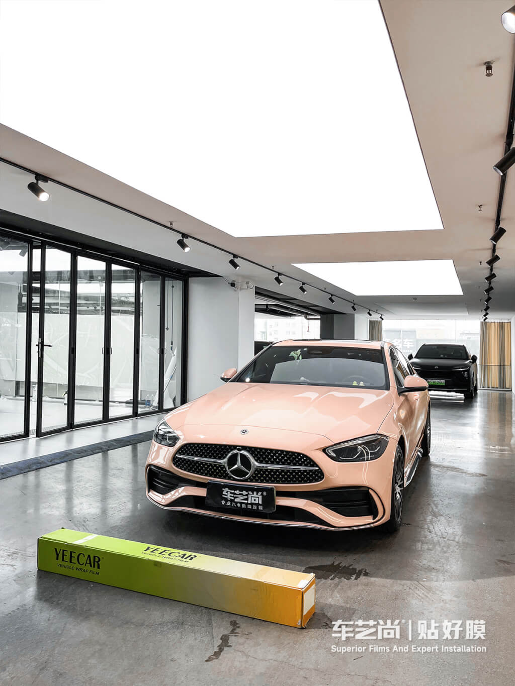 ✔奔驰C级的钣金精度高达0.8mm缝隙,为改色膜提供完美基础,贝壳粉的绸缎质感能凸显车身立体折线