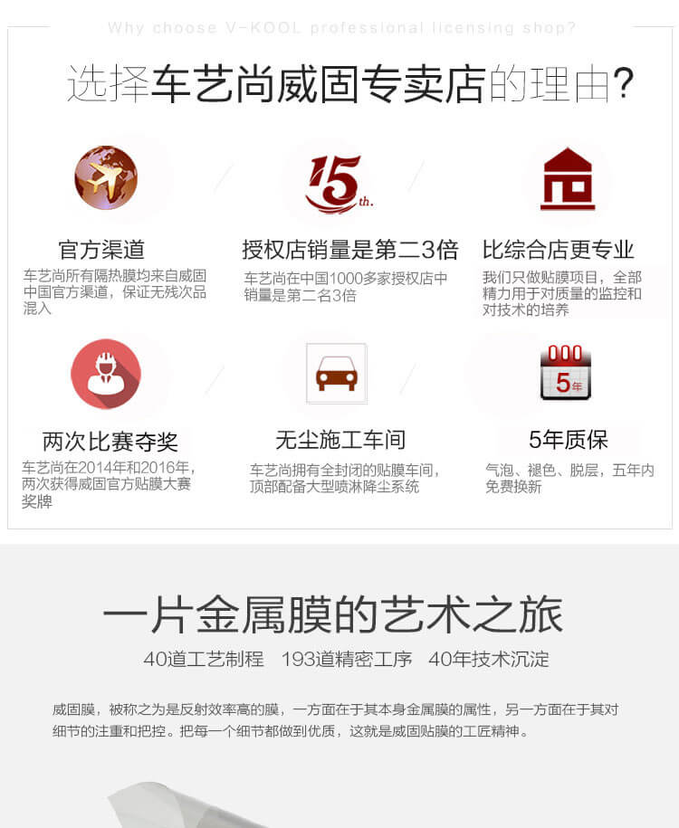 车艺尚 二十一年来专注汽车贴膜艺术,目前在上海、深圳、杭州、苏州等地区拥有十五家直营门店,秉承 ”只贴膜、贴好膜“ 的服务理念,已经为超过十万台车主提供过高品质的贴膜服务。车艺尚威固授权旗舰店,为客户带来 正品、安全、零风险 的专业贴膜体验。