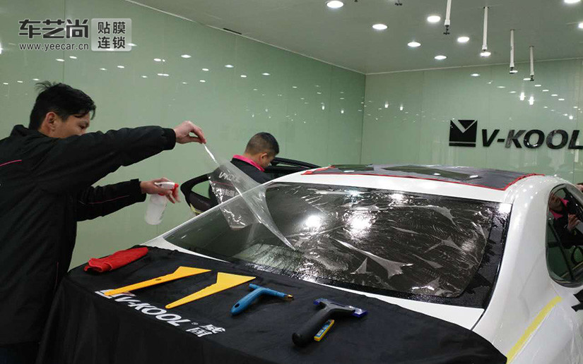 ● 车艺尚采用垫片裁膜,施工中可以保证玻璃完好无损