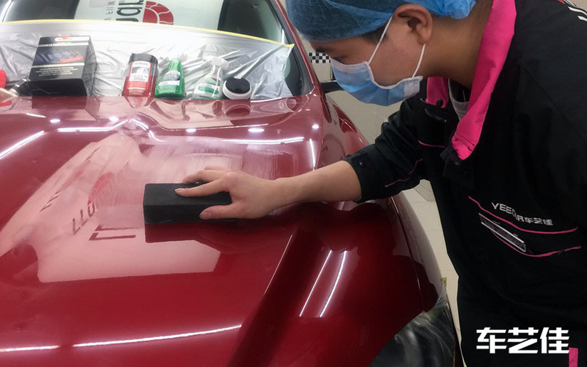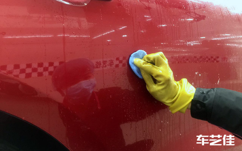 ● 施工前车漆清洁,车艺佳用的都是火山泥去污,确保能够达到优质施工效果