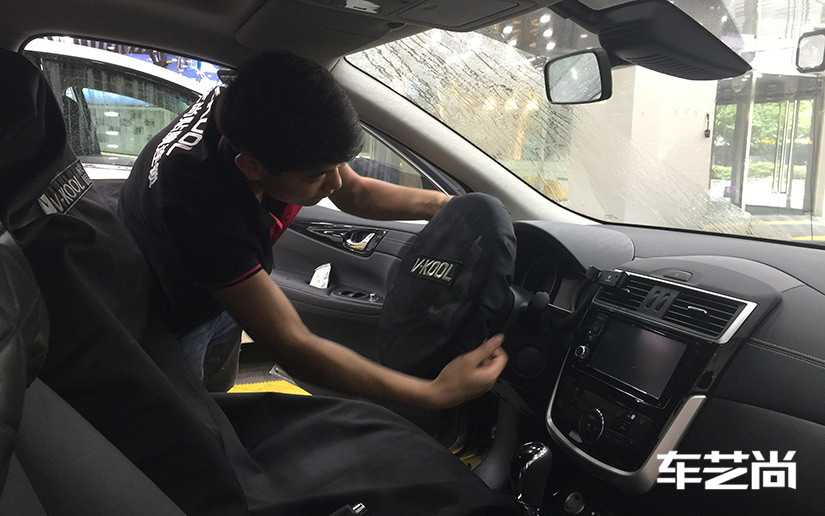 ● 方向盘内饰保护,前挡施工前也会对仪表台等部位进行保护