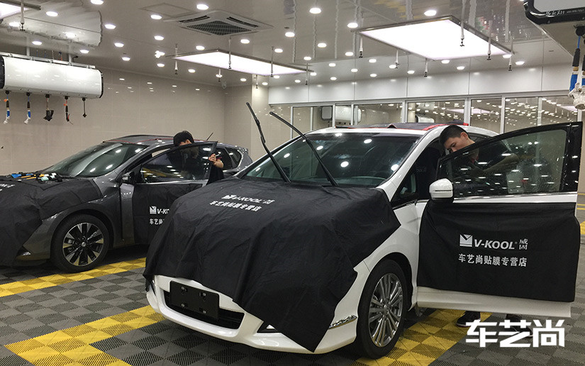 在此建议车友们,特别是广大女性车主,选择贴优质的车膜,可阻隔高达99%的紫外线,比如今天就有本田奥德赛和骐达一起来车艺尚吴中路店贴威固膜。