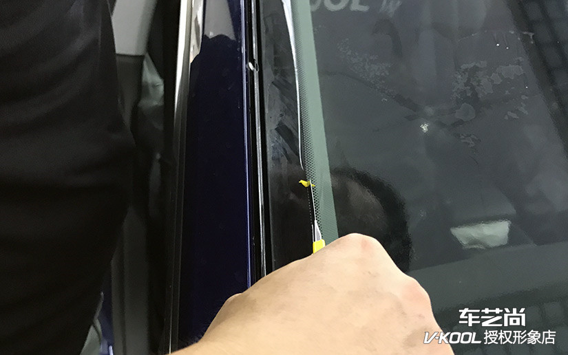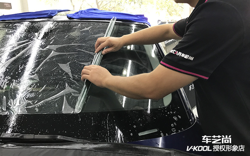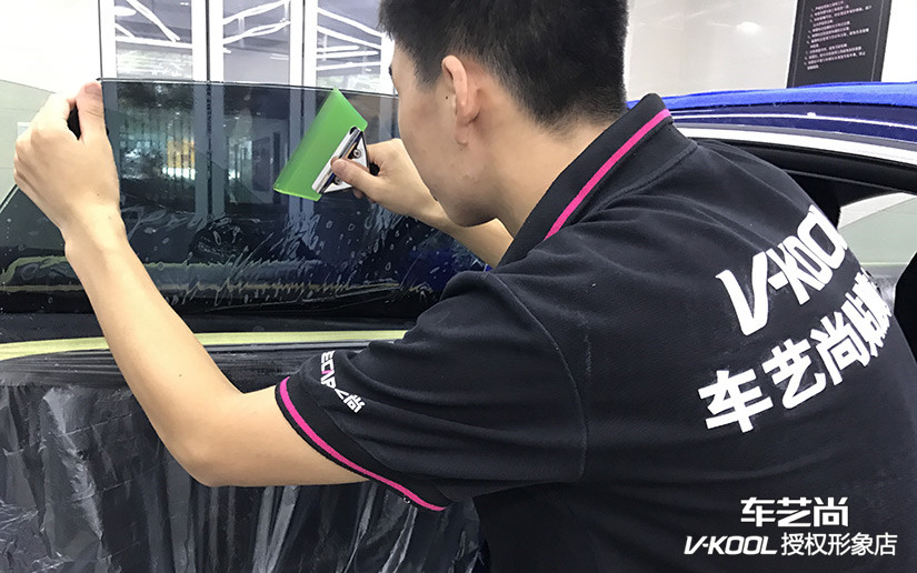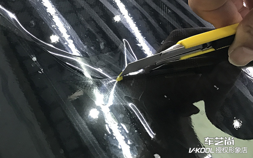 ● 垫片裁膜,避免刀片划伤玻璃,车艺尚技师有非常丰富的贴膜施工经验