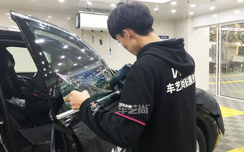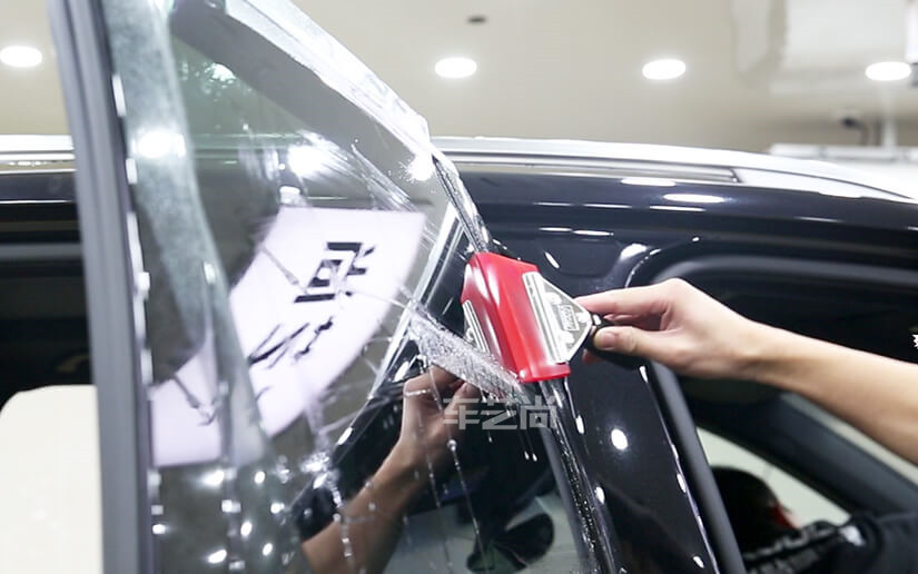 车艺尚技师专注贴膜的每一个细节,膜贴到了玻璃的边缘,整体美观大方裁剪工整,几乎看不出贴膜的痕迹。