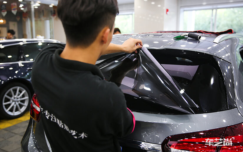 车艺尚技师膜贴到了玻璃边缘,几乎无贴膜痕迹