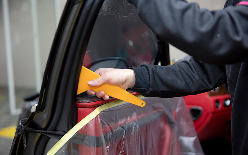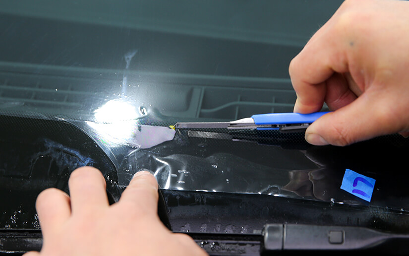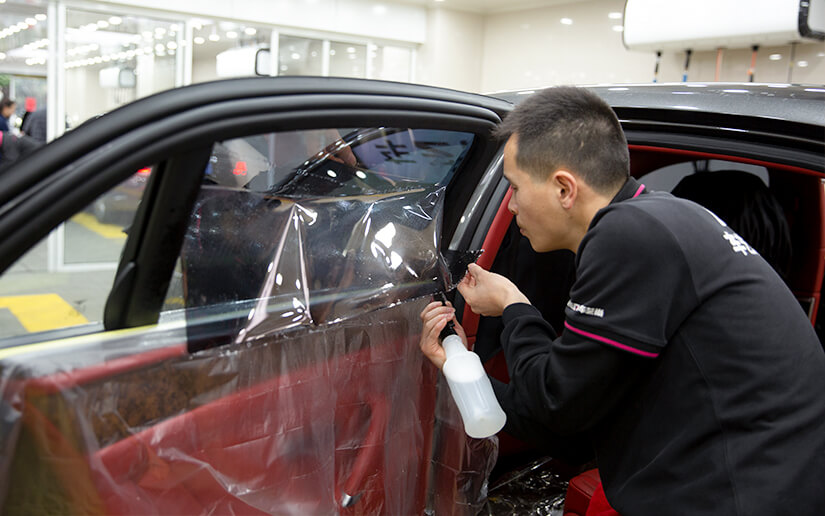 垫片裁膜,避免施工中划伤爱车。