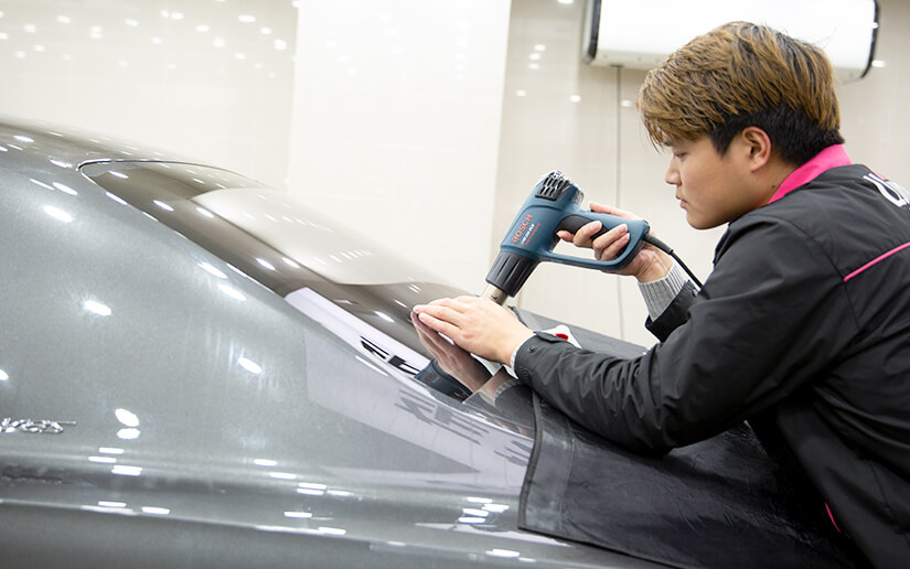 进口博士烤枪恒温烘烤,不伤膜,微距施工,几乎看不出贴膜痕迹。