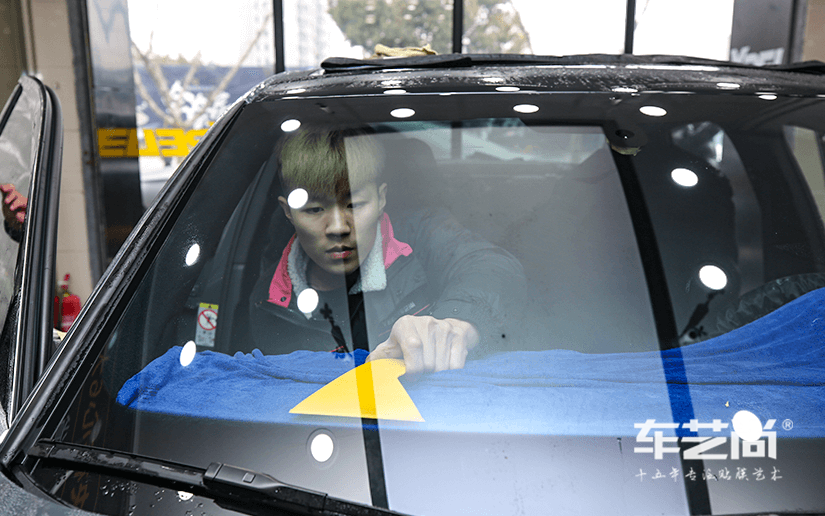 ▲车艺尚首创的垫片裁膜工艺,精裁膜过程中不会划伤您的爱车玻璃
