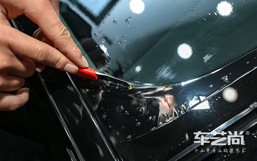 ▲车艺尚首创的垫片裁膜工艺,精裁膜过程中不会划伤您的爱车玻璃