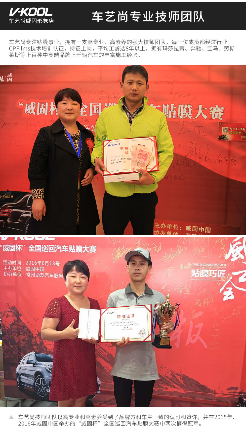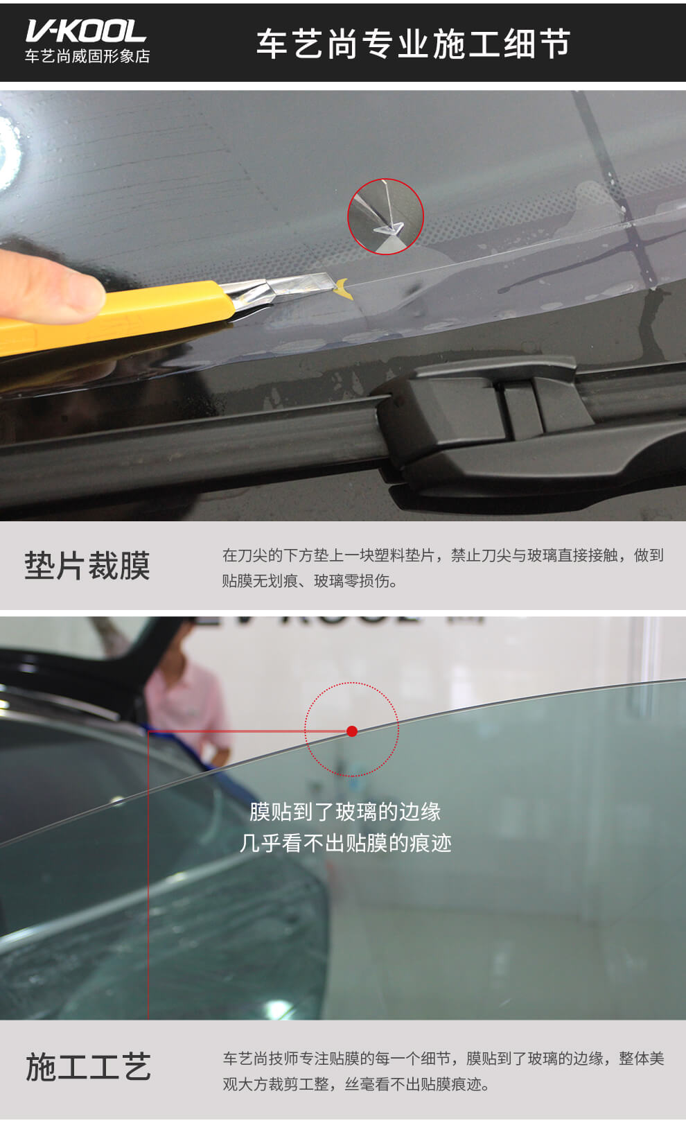 V-KOOL宝山旗舰店是威固官方在上海的授权旗舰店,也是车艺尚旗下的A级旗舰店!完全按照官方标准建造,专业设施齐全,所有技师经官方认证上岗,拥有专业的技术团队和无尘贴膜间,是上海为数不多的专业贴膜机构,可以为您提供从施工到质保的管家式贴膜体验。