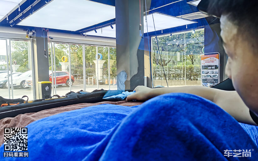 车艺尚技师将工具摆放整齐,施工中可以快速找到对应工具,提高施工效率,避免拿错工具。