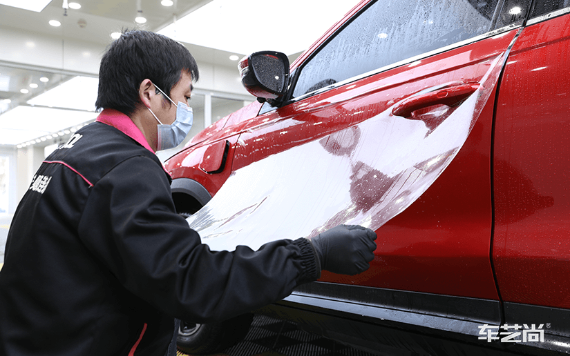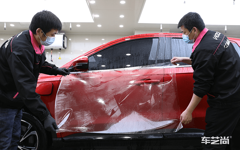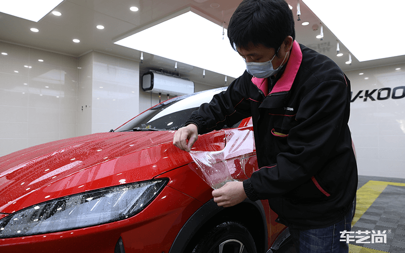 车艺尚威固旗舰店为红色小鹏G3装贴隐形车衣: