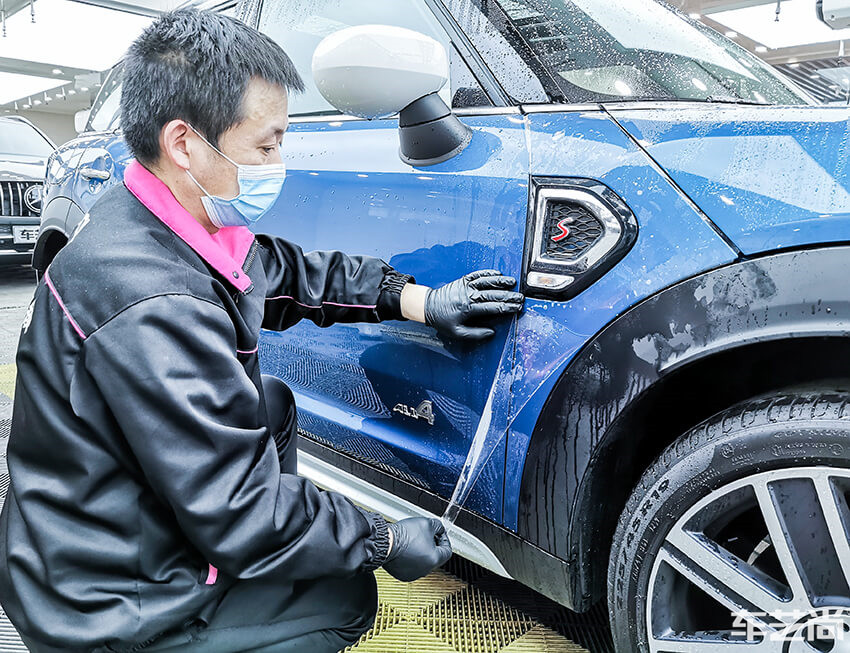 膜只是一种原材料,  没有贴到车身之前叫做半成品,需要拥有丰富经验的施工师傅,贴膜技术至关重要,优秀的施工工艺才能保证以后在使用过程中不起泡,不翘边。不出现水波纹