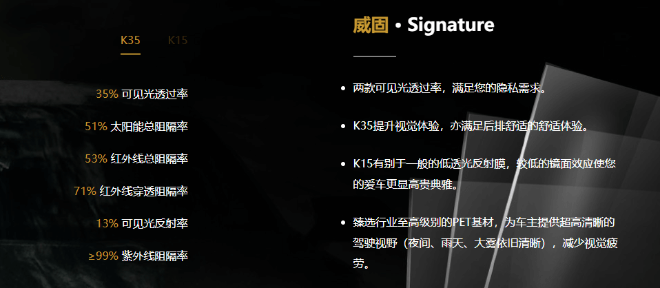 ③透光率15%-30%:常用于汽车侧后挡玻璃,属于深色膜。