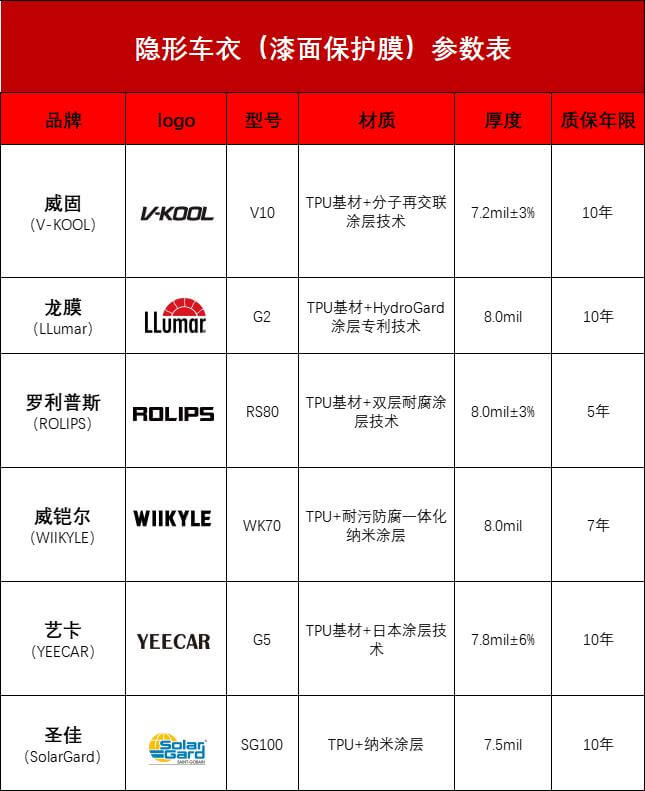 YEECAR G5:厚度8.0mil±6%,质保10年。