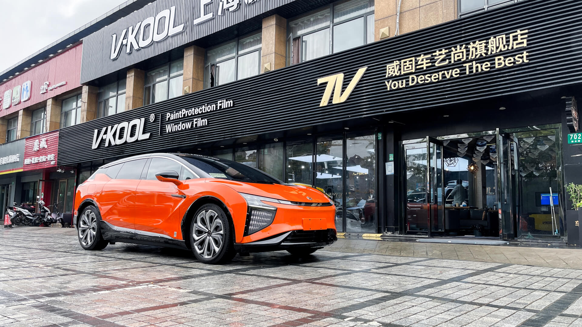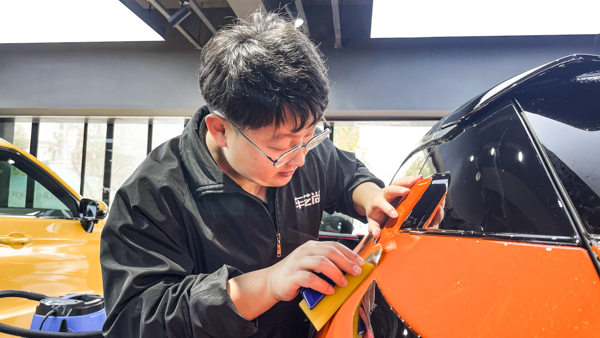 门店配备:①无尘施工间;②贴膜工具齐全;③干净整洁