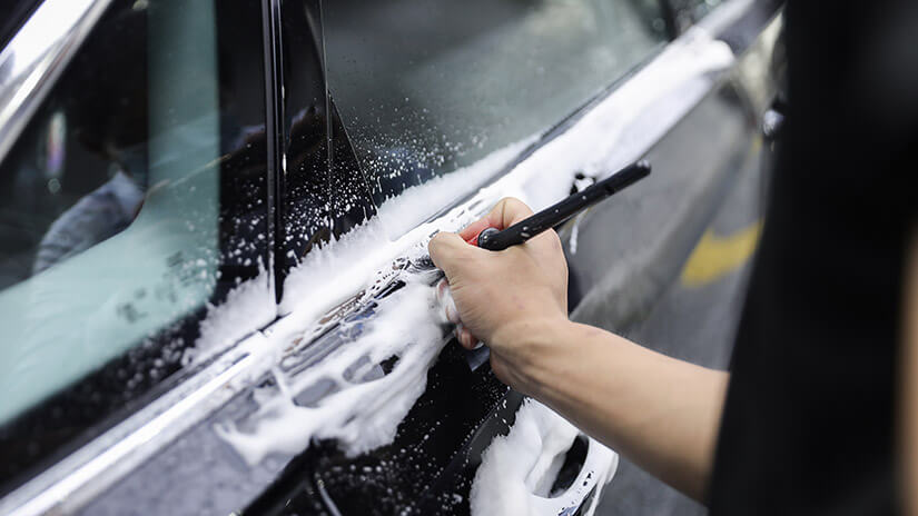 对车窗玻璃玻璃开展清理,特别是在要留意玻璃顶端,不易清理的位置和边沿部位,随后擦拭水份。