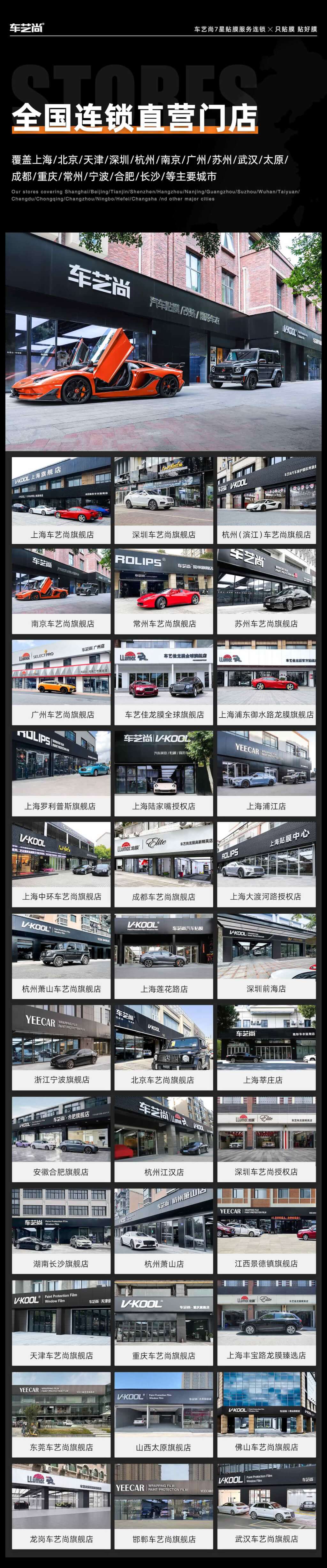 车艺尚20年专业贴膜服务,对于选品向来严格把关,所有代理品牌都是经过实测后再售卖,全国40+门店,30W案例,我们更加珍惜自己的口碑,实力缔造品质,为爱车保驾护航,我们更专业!