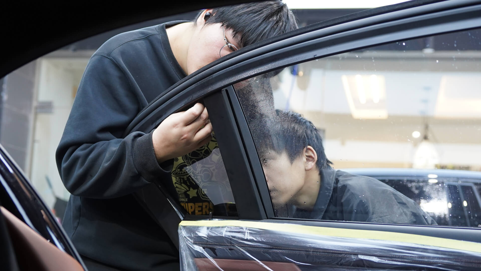 贴好膜之后,车艺尚并不是直接就将车子交给车主,而是先经过多位技师的严格检查,再三确认是否有肉眼可见的瑕疵,比如包边包角预留是否得当、有无粉尘颗粒、有无气泡等。只有当贴好的车膜完美无瑕、符合各项标准时,车艺尚才会将车子交付给车主。