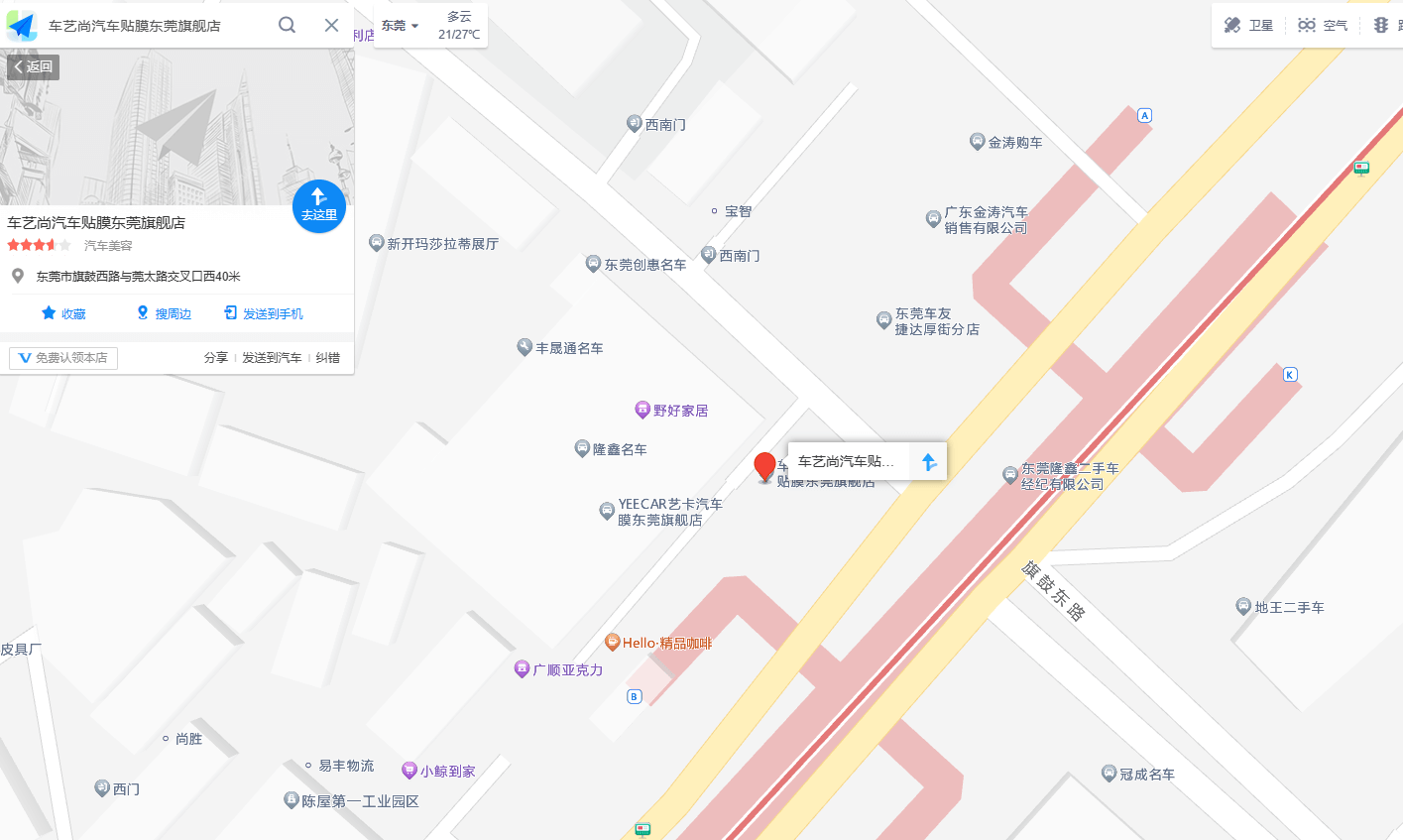 高德地图定位如图所示:打开高德地图搜【车艺尚东莞】就会出现以下定位