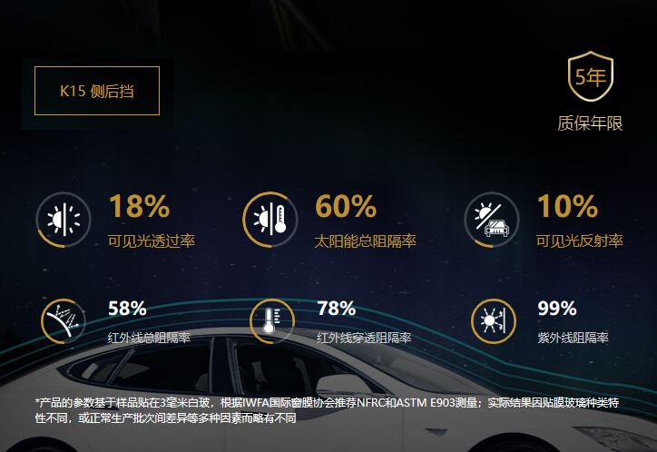 可见光透光率:KC20的透光率最高,K15次之,X15最低,所以X15的隐私保护性能更好,对隐私性能要求比较高的车主可优先选择X15。