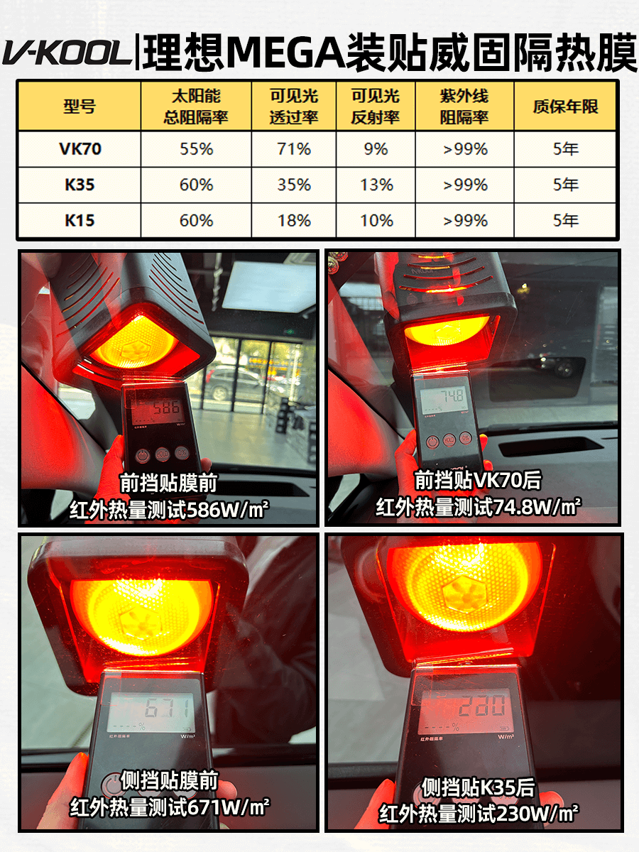 理想MEGA装贴威固vk70+k35贴膜效果: