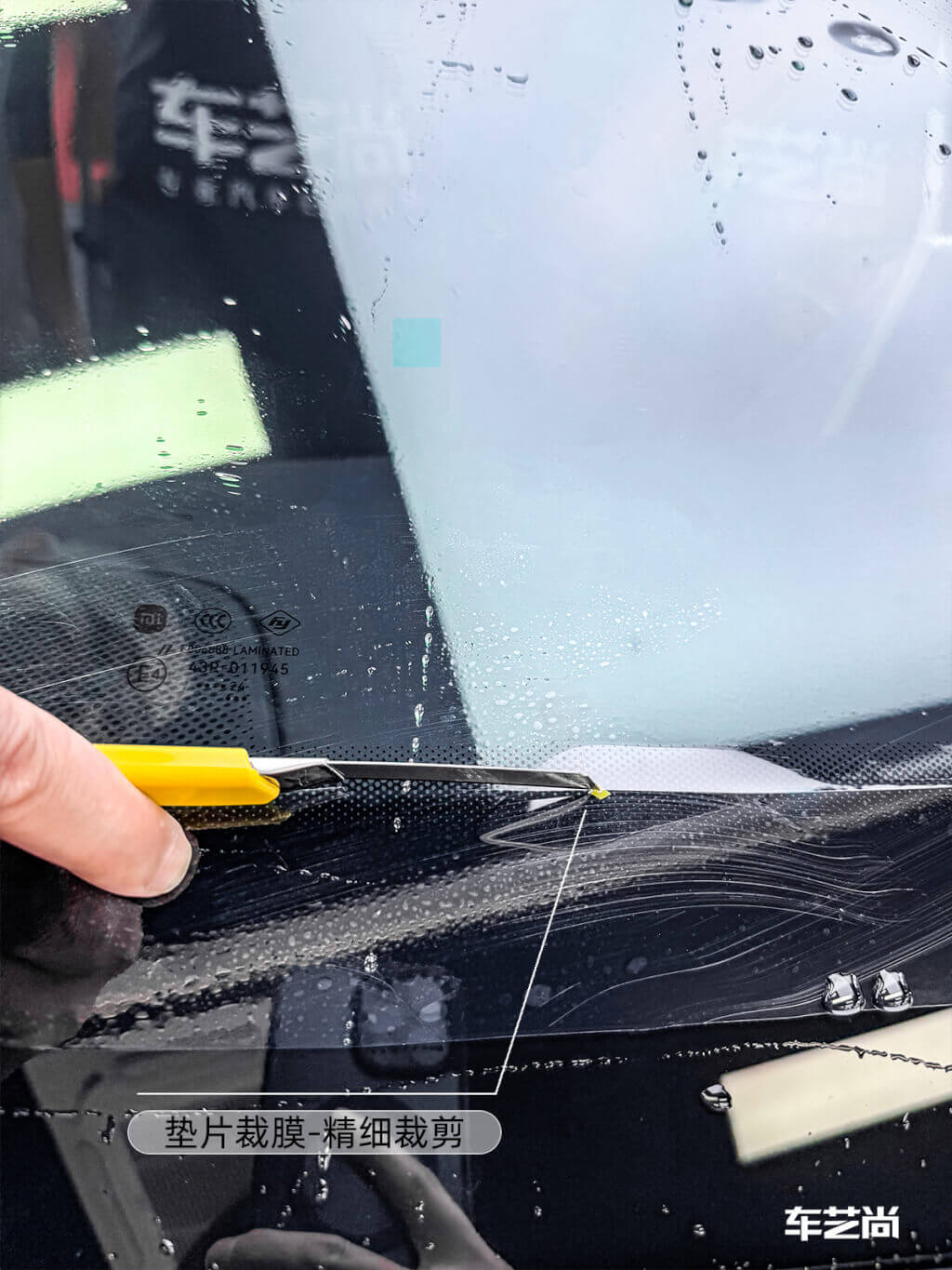 垫片裁膜:在玻璃和刀片之间垫入塑料小片,防止刀片直接接触汽车玻璃,确保裁剪过程中不会损伤车辆玻璃,实现无损贴膜。