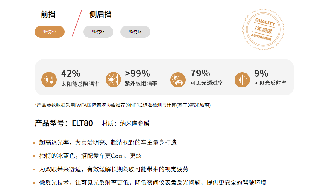龙膜畅悦系列是龙膜全车贴膜最畅销的一款,都是纳米陶瓷膜。其中畅悦80作为前挡汽车膜自然也是倍受欢迎,又因为性价比很高,适合广大车主群体使用,所以销量一直在龙膜品牌汽车膜中处于领先水平。