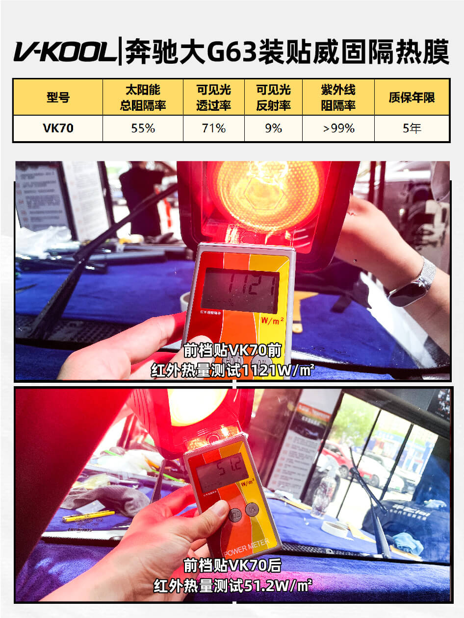 从两者的太阳能总阻隔率的数值可以看出,威固VK70的隔热性能更优于龙膜畅悦80。威固VK70的总太阳能阻隔率达到了惊人的55%,而龙膜畅悦80的太阳能总阻隔率为42%,数据对比非常直观。隔热性能的高低是反映隔热膜技术和质量的重要指标,因此从隔热性能的角度来看,想要更高隔热性能的选威固VK70。