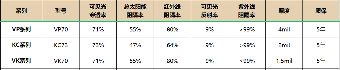 威固前挡有什么型号?总体来说,威固主要热卖的还是VK70、KC73、VP70这三大前挡汽车膜,一般分清这三个基本就足够了。当然威固还有其他线上款前挡汽车膜,如MD90等,只在各大线上平台售卖,想了解的车友可直接咨询官方客服