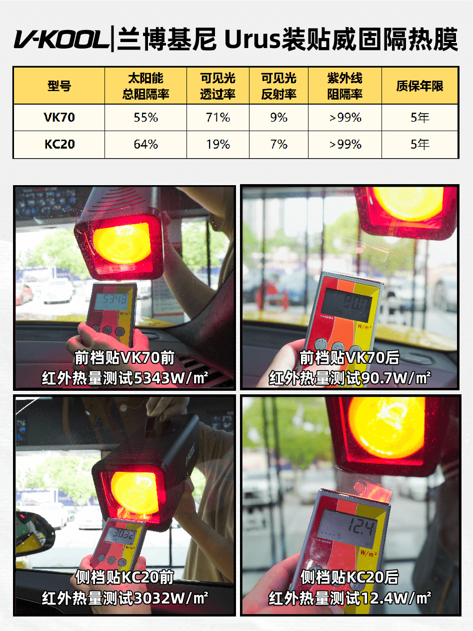 VK70是威固的经典前挡贵金属膜,具有高清晰、高隔热的特性。搭配的KC35/20侧后挡膜为纳米陶瓷膜,在保证隔热的同时,不影响信号传输