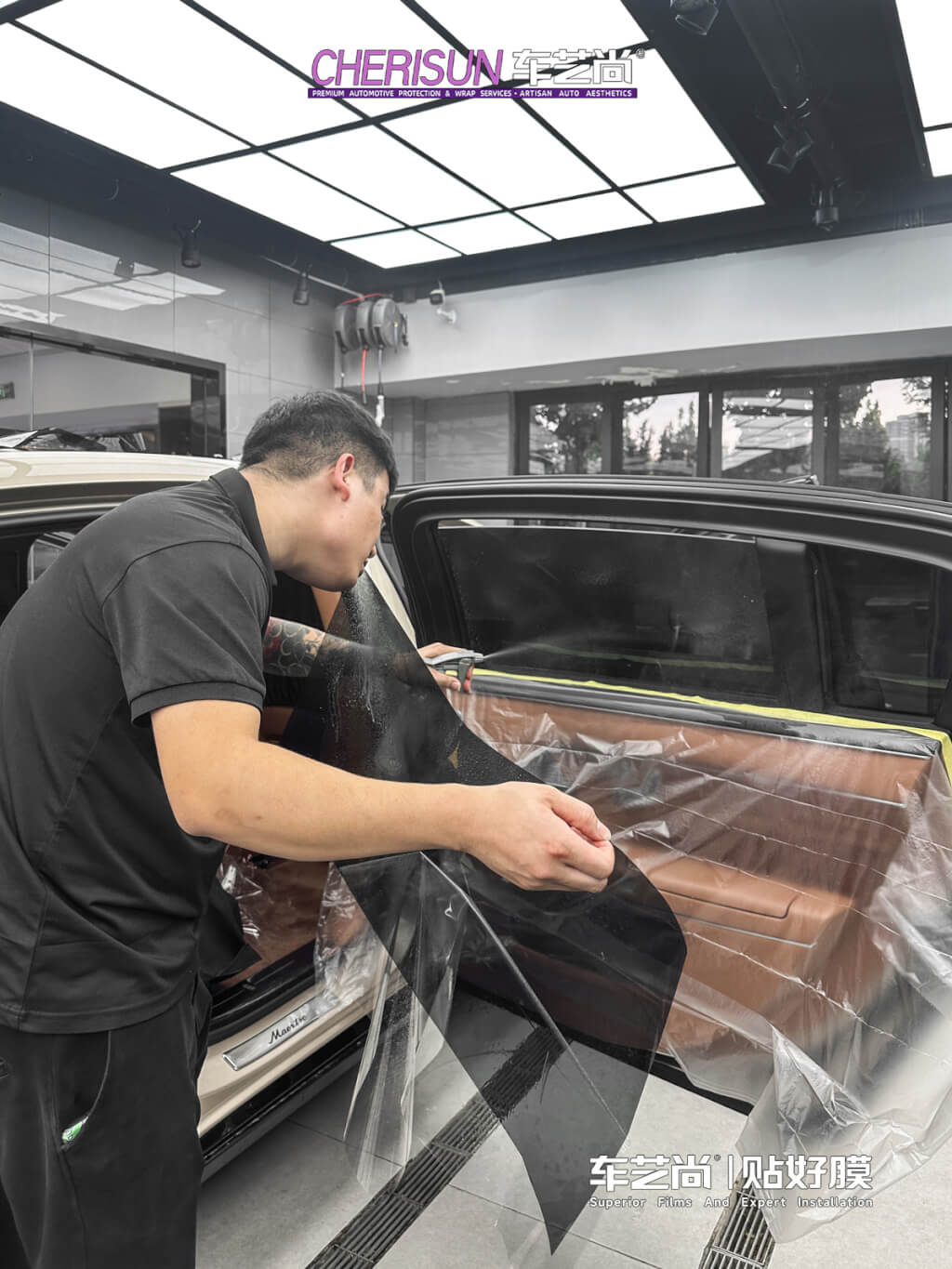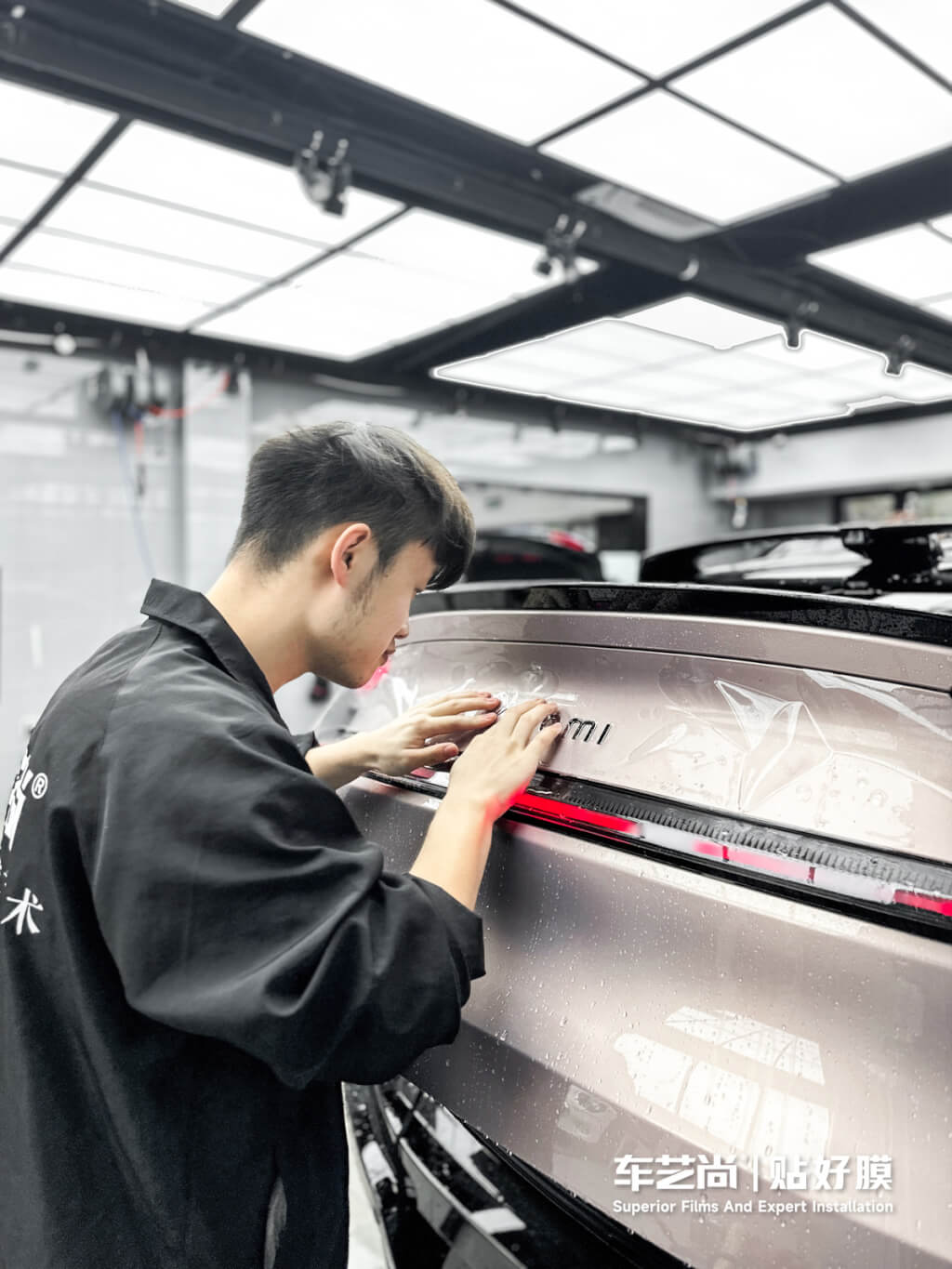 技师均为品牌认证 + 多年实战经验,人均经手 300 台以上高端车型,精通专车专用机裁 + 手工精裁,包边包角细腻到位,不拆件、不伤车漆。