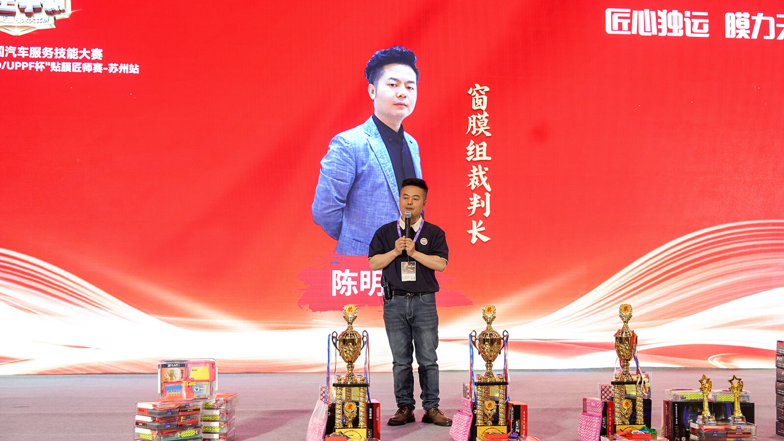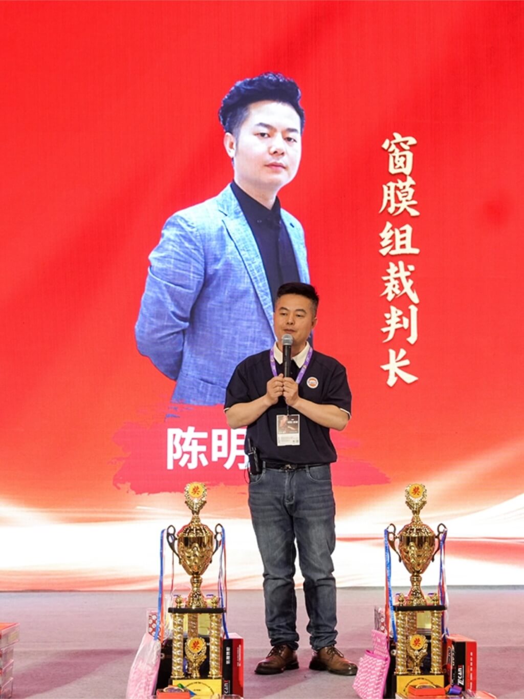 (车艺尚技术总监陈明春担任窗膜组裁判长)