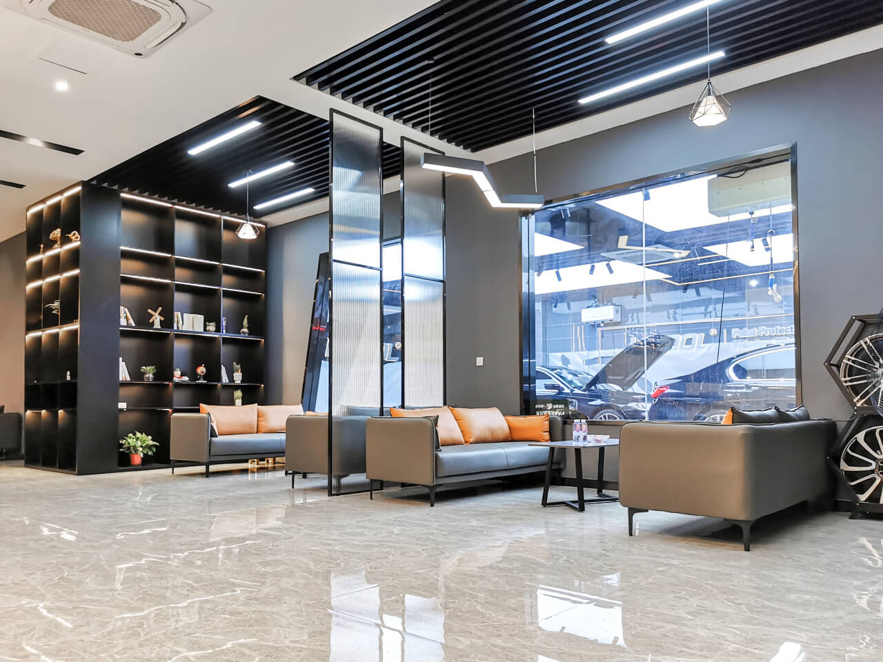 更贴心的是,您可以通过休息区的实时监控画面,随时查看爱车的贴膜进度和施工细节。无需进入施工车间,就能全程掌握每一个环节。