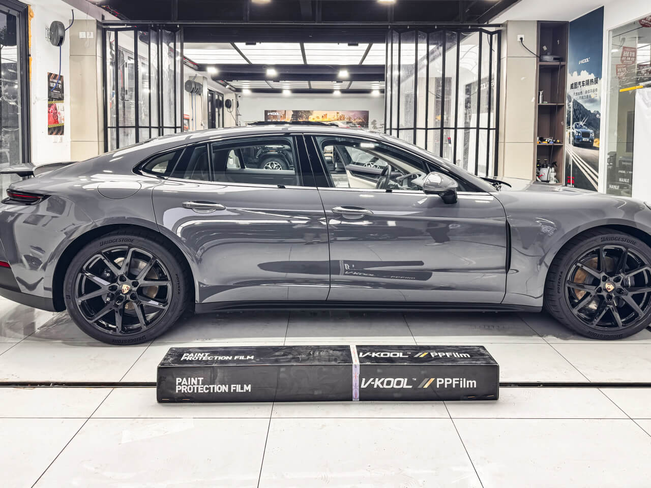 恒温恒湿无尘车间:配备行业顶配雾化降尘系统、正压送风过滤装置及精密恒温控制系统,洁净度接近ISO8级标准,有效隔绝港口海风盐分、空气中的沙尘颗粒,杜绝贴膜过程中尘点、气泡、翘边等问题,为贴膜提供稳定、洁净的施工环境,还原膜面镜面级质感。