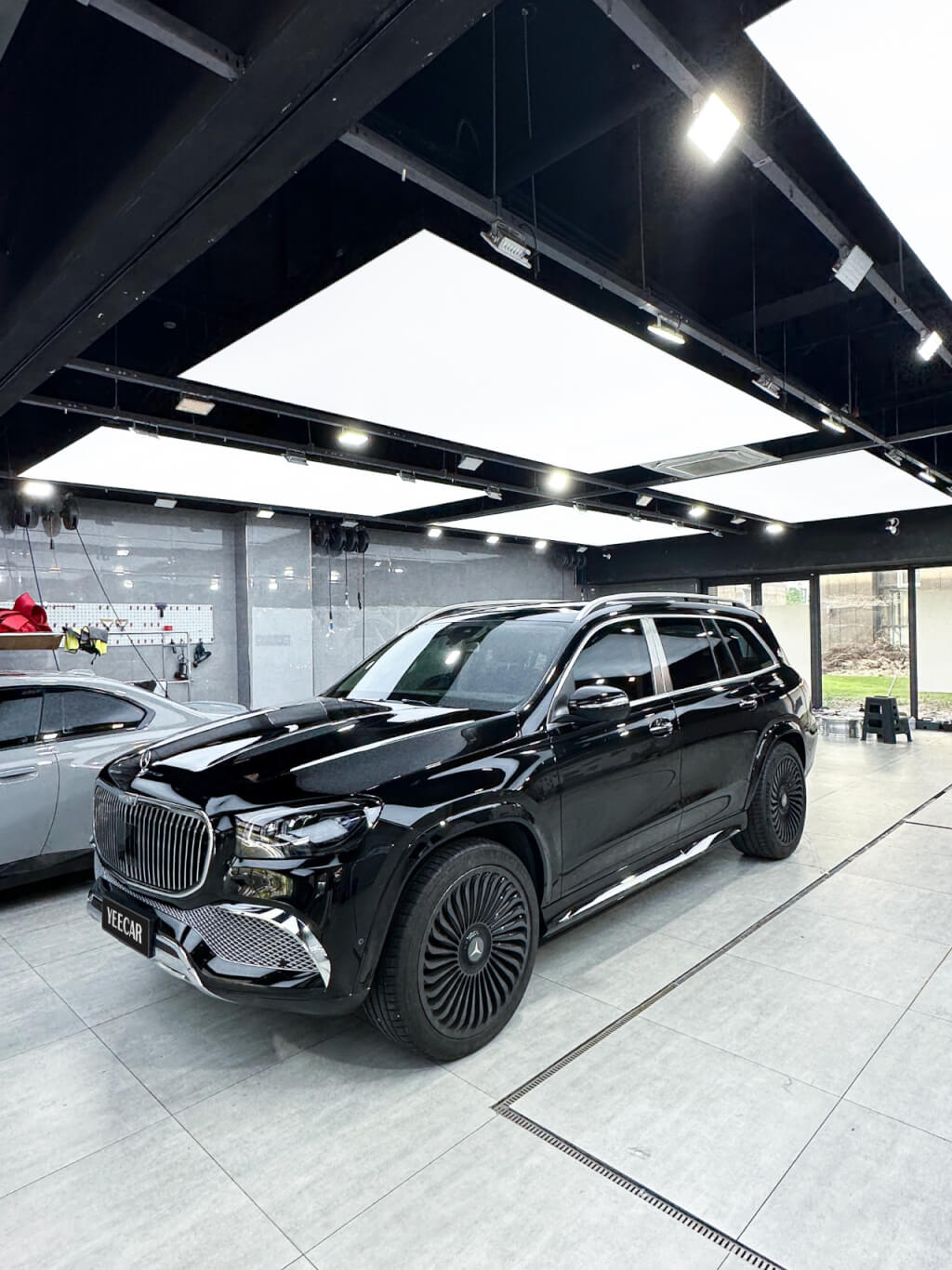 车艺尚宁波店配备专业照明系统、大型喷淋降尘设备和标准的车间疏水系统,能够最大限度降低空气中的悬浮颗粒,减少尘点附着,施工环境干净、明亮、整洁。专业连锁门店还配备恒温恒湿系统、德国进口无影灯系统,确保施工全程无尘、无静电干扰,专业环境可使贴合精度提升40%。