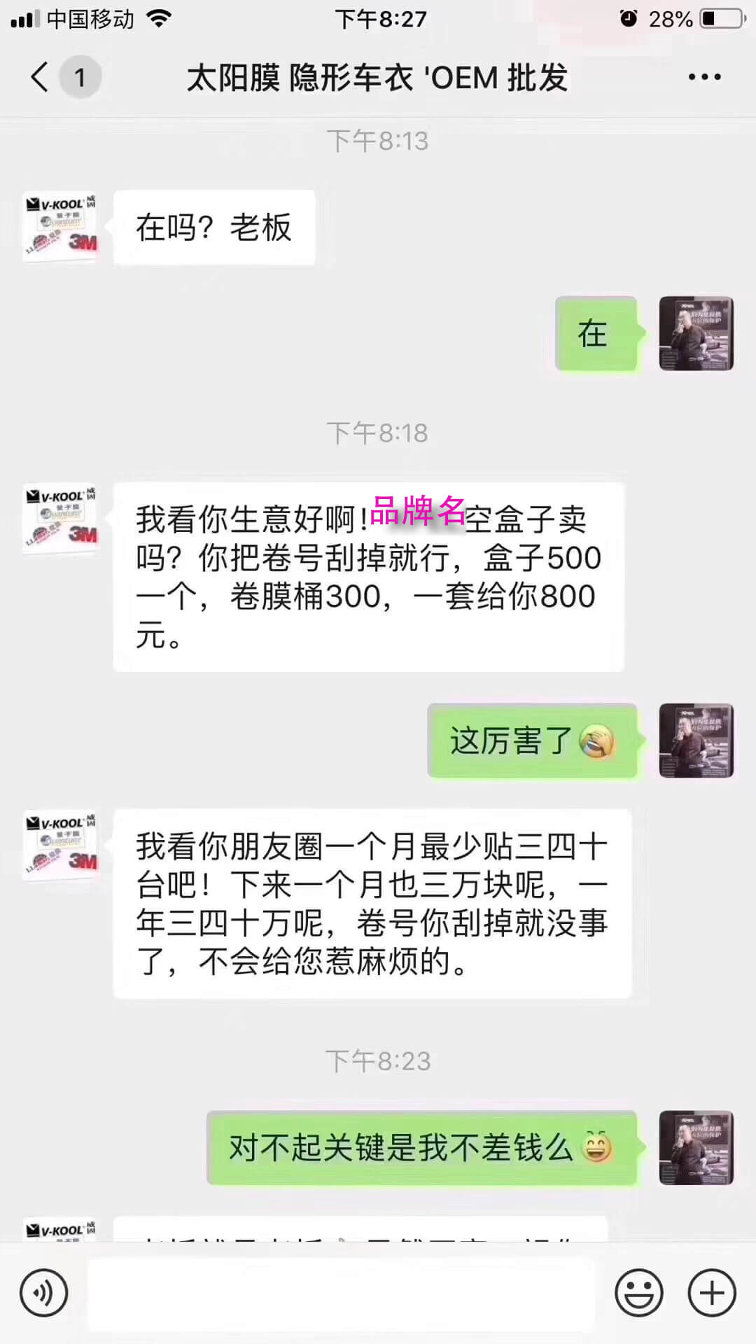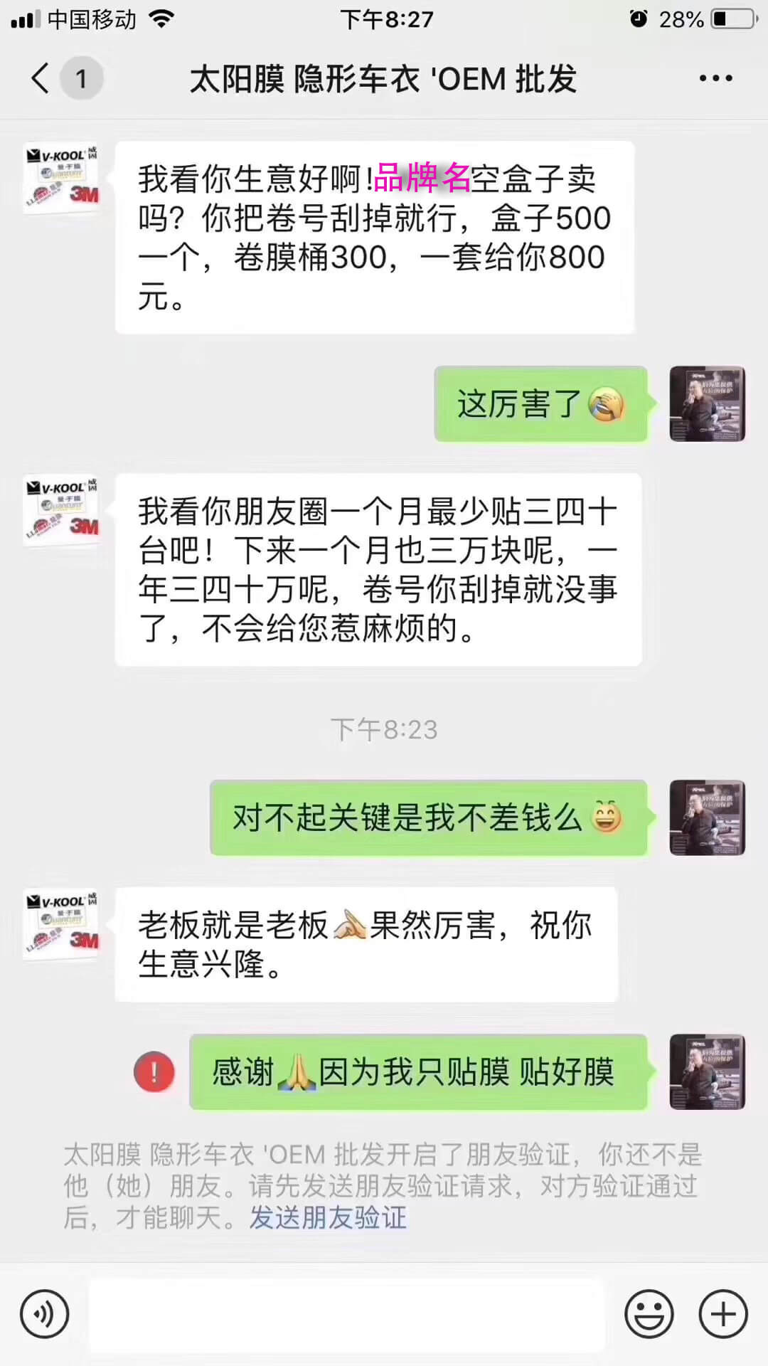 “我们不生产车衣,我们只是劣质膜的搬运工”?有多少店家,因为一时的鬼迷心窍,不知道影响了多少车主们的用车体验,所以说,车主们在买膜的时候,切记一定走官方路径;还要记住,宁愿不贴,也不要因为便宜选择装贴劣质膜,切不可因小失大。
