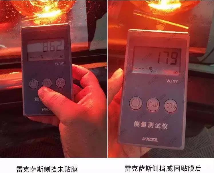 使用另一种计量单位W/㎡(即投射到单位接收面积的辐射照量),不同车型在装贴威固隔热膜前后,也存在巨大的差异!