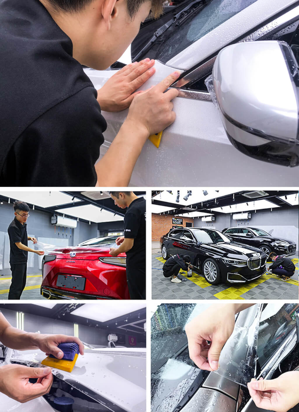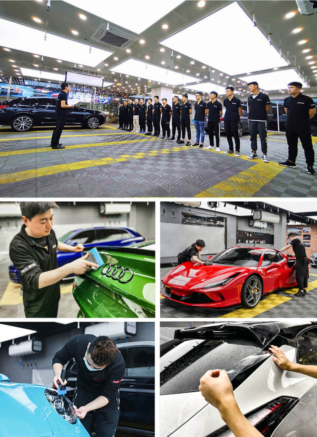 常州店技师团队均经过行业培训、品牌方培训、内部考核等多重标准选拔,拥有超十万辆车型贴膜经验,绝不拿您的车当小白鼠!汽车隔热膜施工中,常州店采用微水施工、微距施工等多项特有技术,避免划伤爱车、车辆进水等施工伤害,只贴膜不伤车。