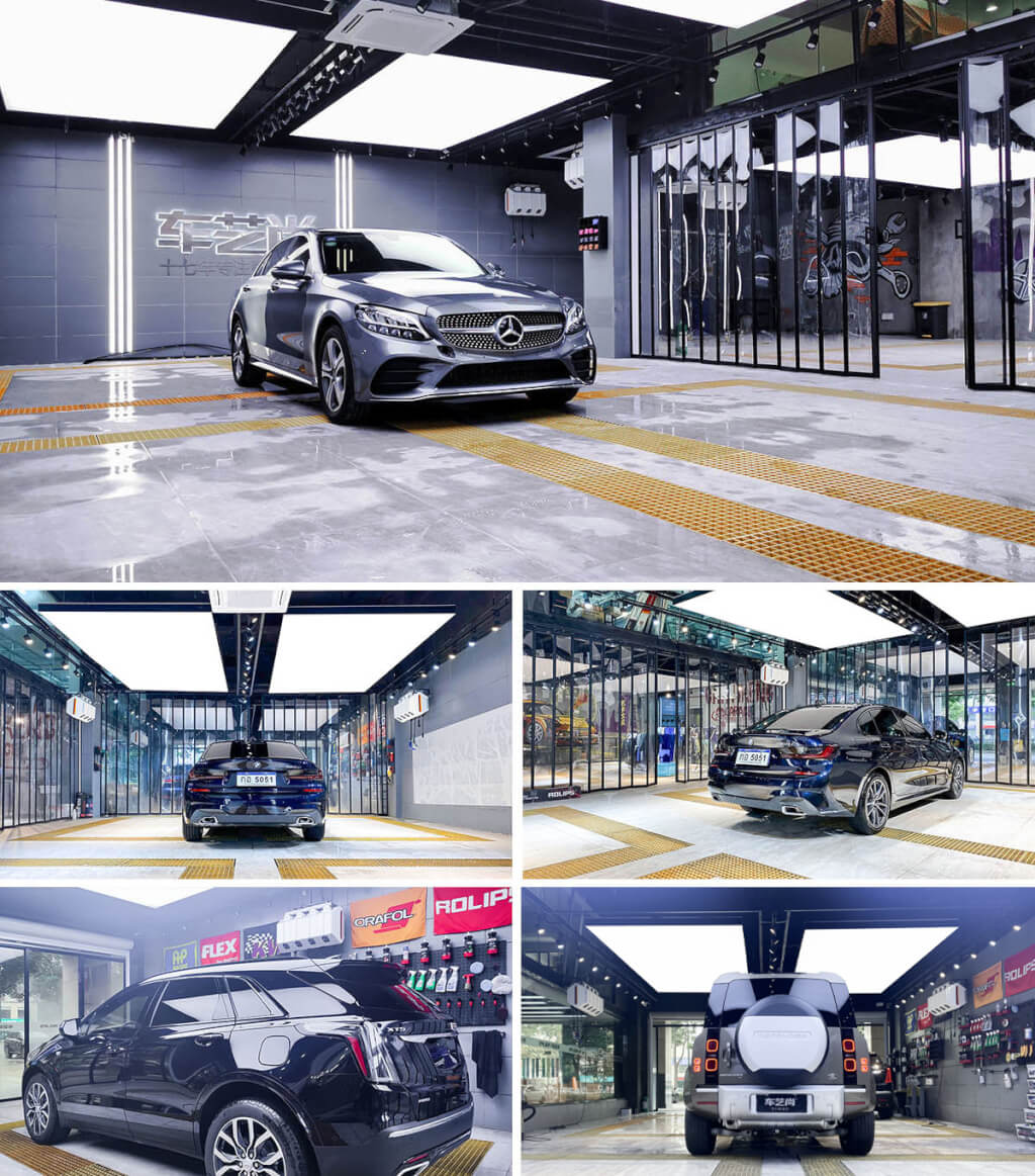 专业汽车贴膜施工间,宽敞、明亮、整洁